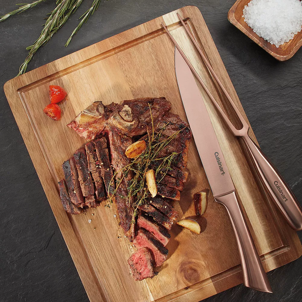 Prepare meals in style with the sophisticated style of this Cuisinart rose gold-accented cutlery set.