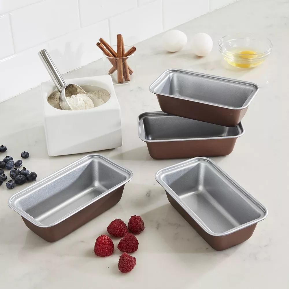 - 4 mini loaf pans: 1.75″H x 6″W x 3.25″D (each)
