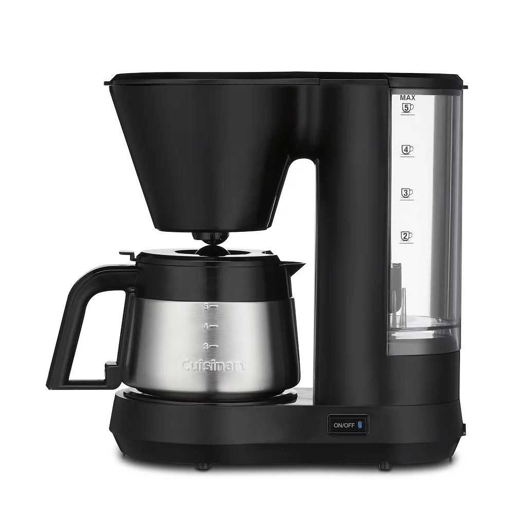 The 5-Cup Stainless Steel Coffeemaker by Cuisinart offers a stylish small-space solution with full-size functionality. Simple settings make it easy to brew favorite coffee blends with all the rich, delicious flavor and none of the fuss!