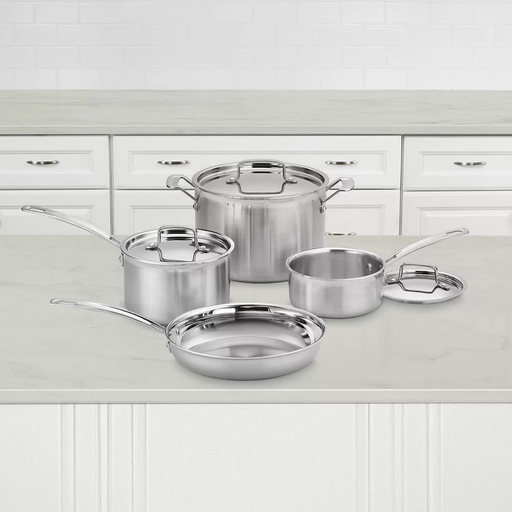 Create world class meals with this durable Cuisinart Multiclad Pro cookware set.