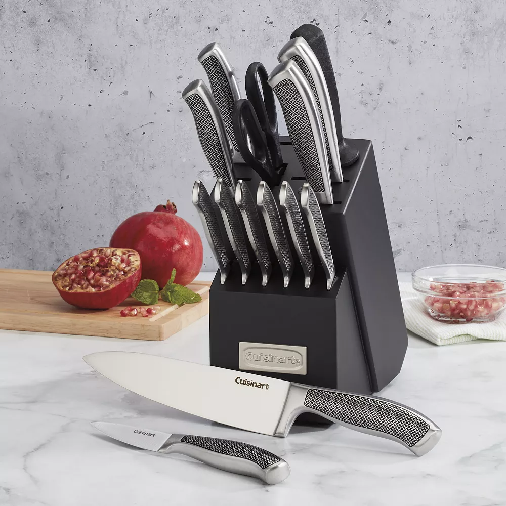 Bring elegant style to your kitchen with this Cuisinart Graphix Herringbone knife block set.