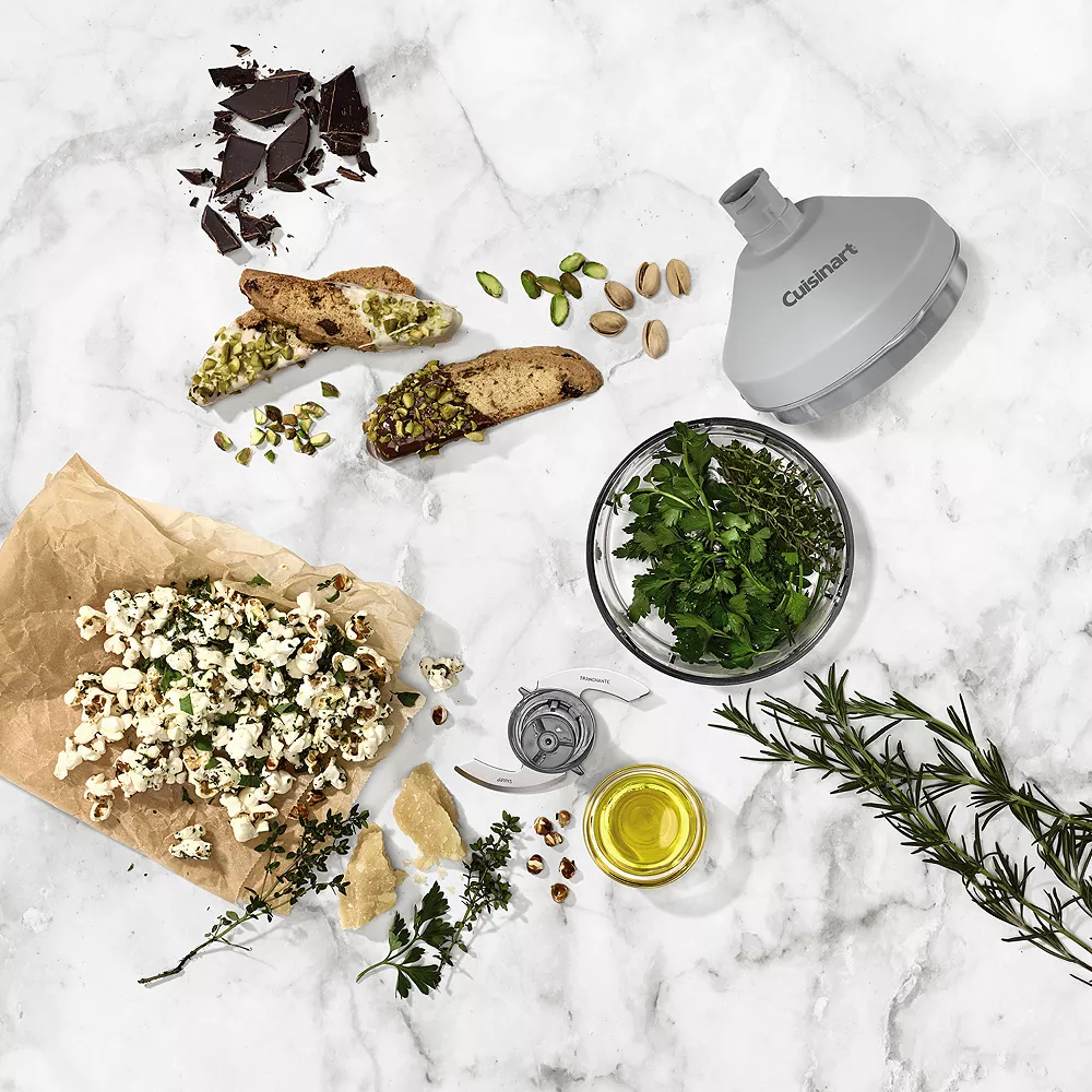 Custom-designed for use with the Cuisinart 8-Speed Hand Mixer HM-8GR, this versatile attachment adds variety to family meals and desserts. Equipped with an ultra-sharp, stainless-steel reversible blade, it quickly and easily chops, grinds, and minces to maximize the mixer’s value and performance.