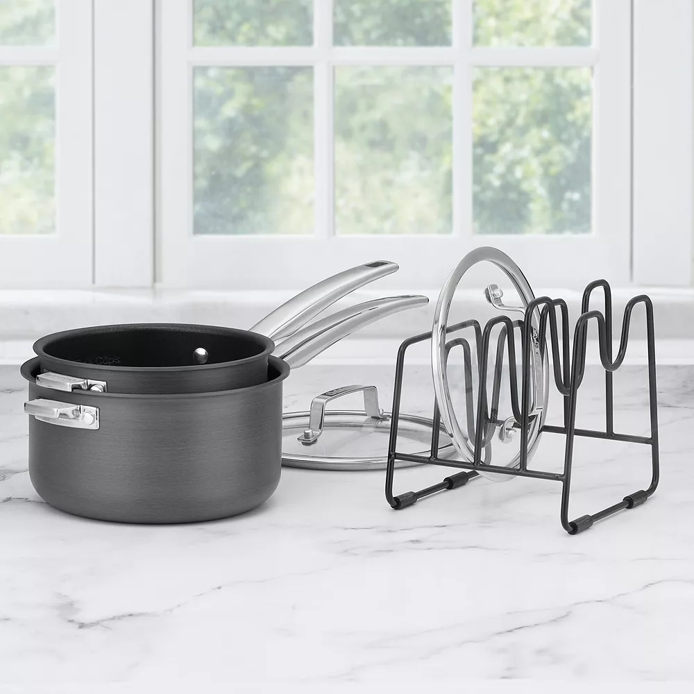 - Specially designed side nesting tabs for easy and safe storing. Includes custom lid organizer to store lids.