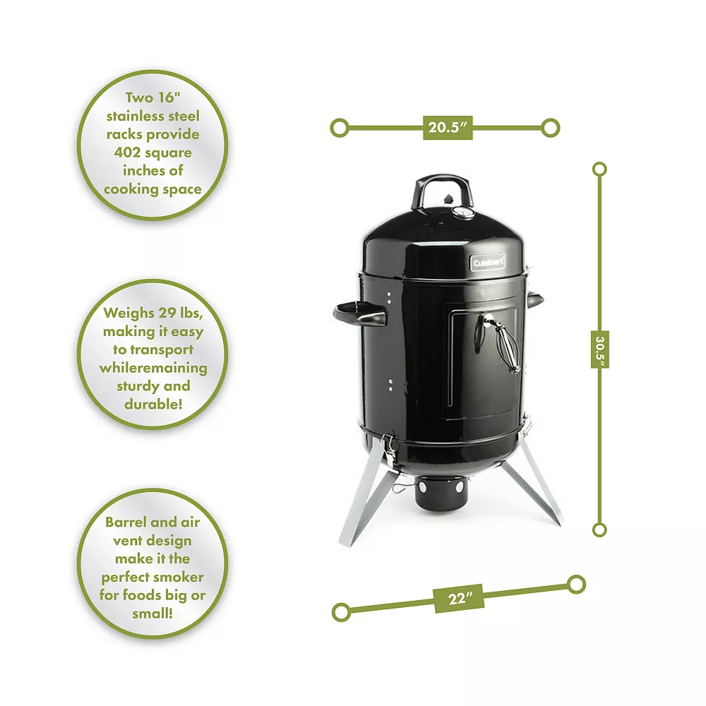 Enjoy delicious smoked food with this Cuisinart Vertical 16-Inch Charcoal Smoker.